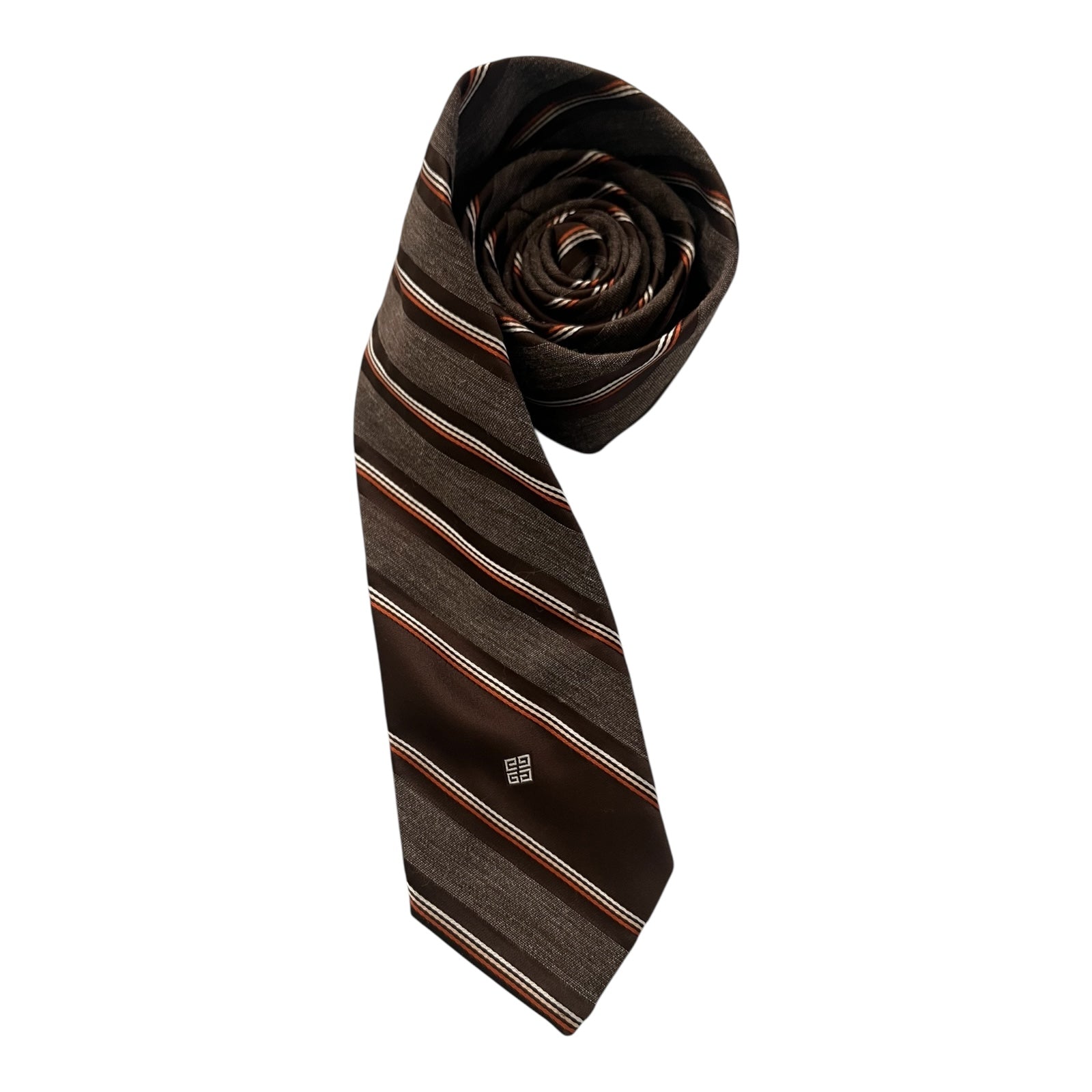 Elevate your formal attire with the Givenchy brown striped necktie, a refined accessory that exemplifies luxury and craftsmanship. Its classic striped pattern adds subtle sophistication, making it ideal for business or elegant occasions. Crafted with precision, this necktie offers a smooth texture and durable finish, ensuring it retains its shape and appearance wear after wear. Perfect for the discerning professional seeking timeless style and quality.