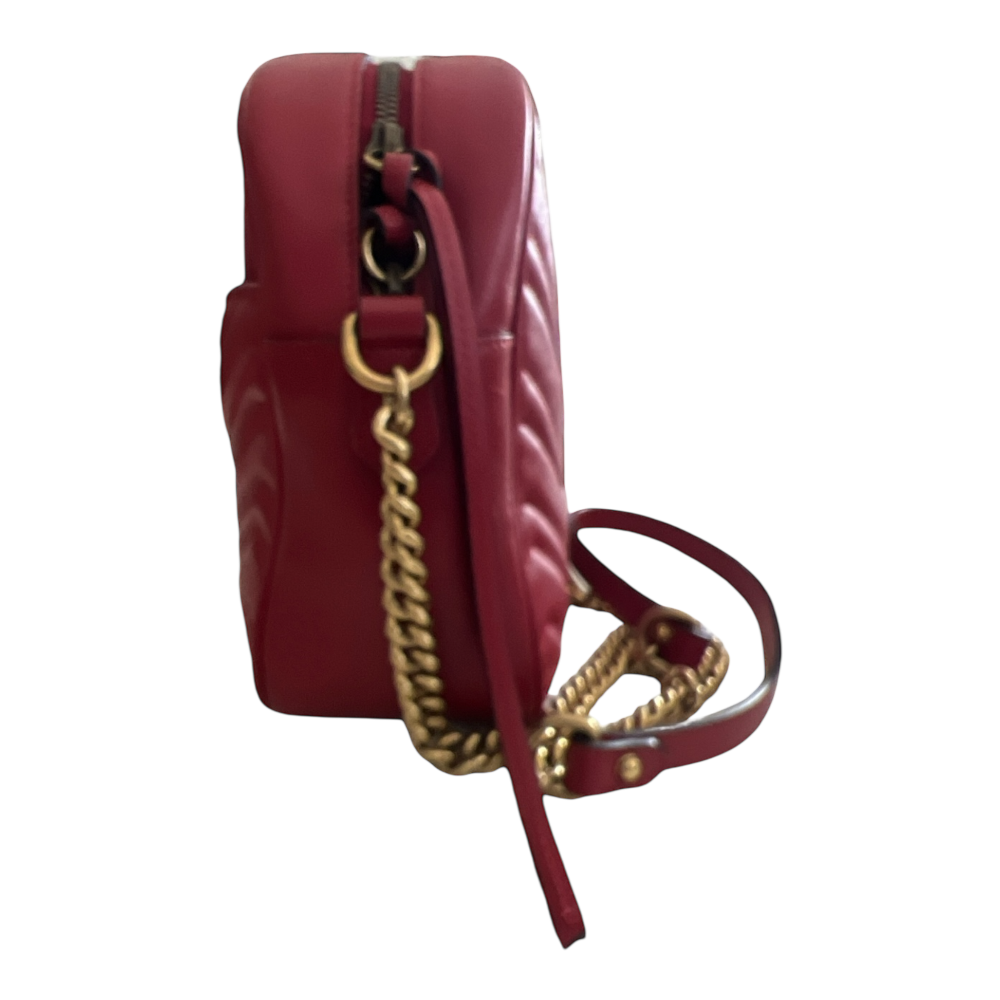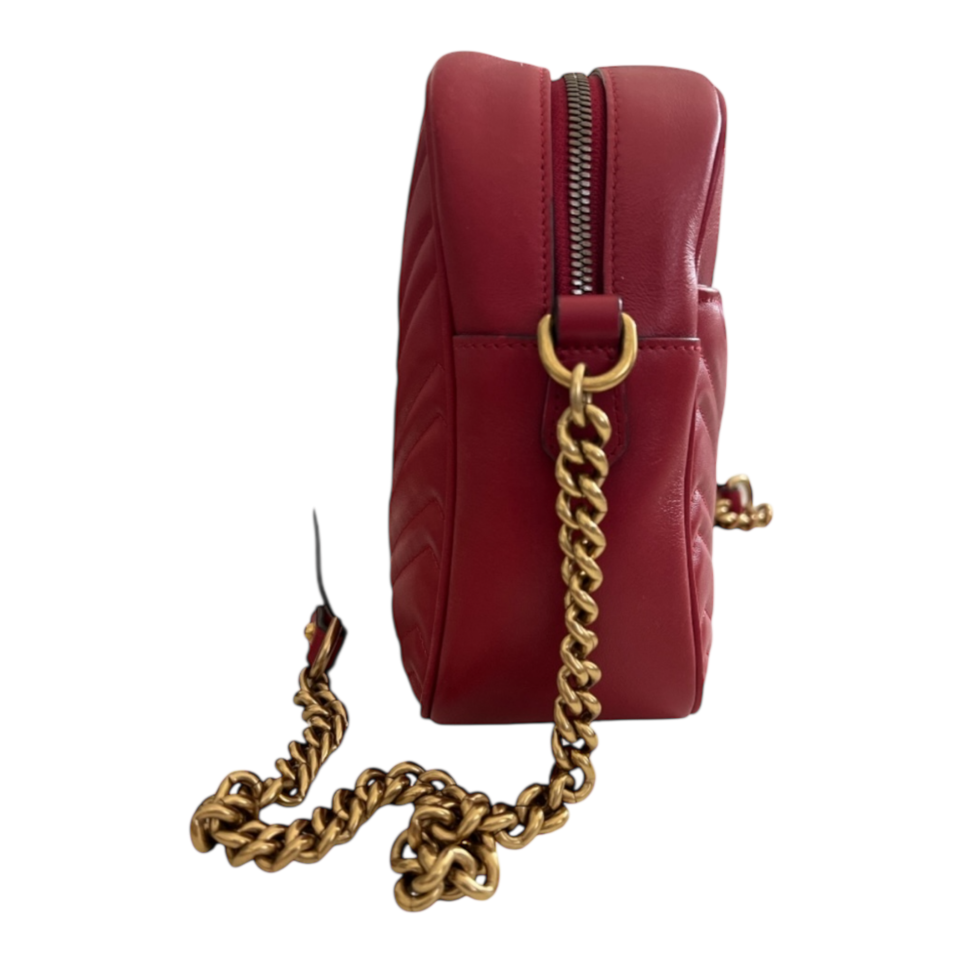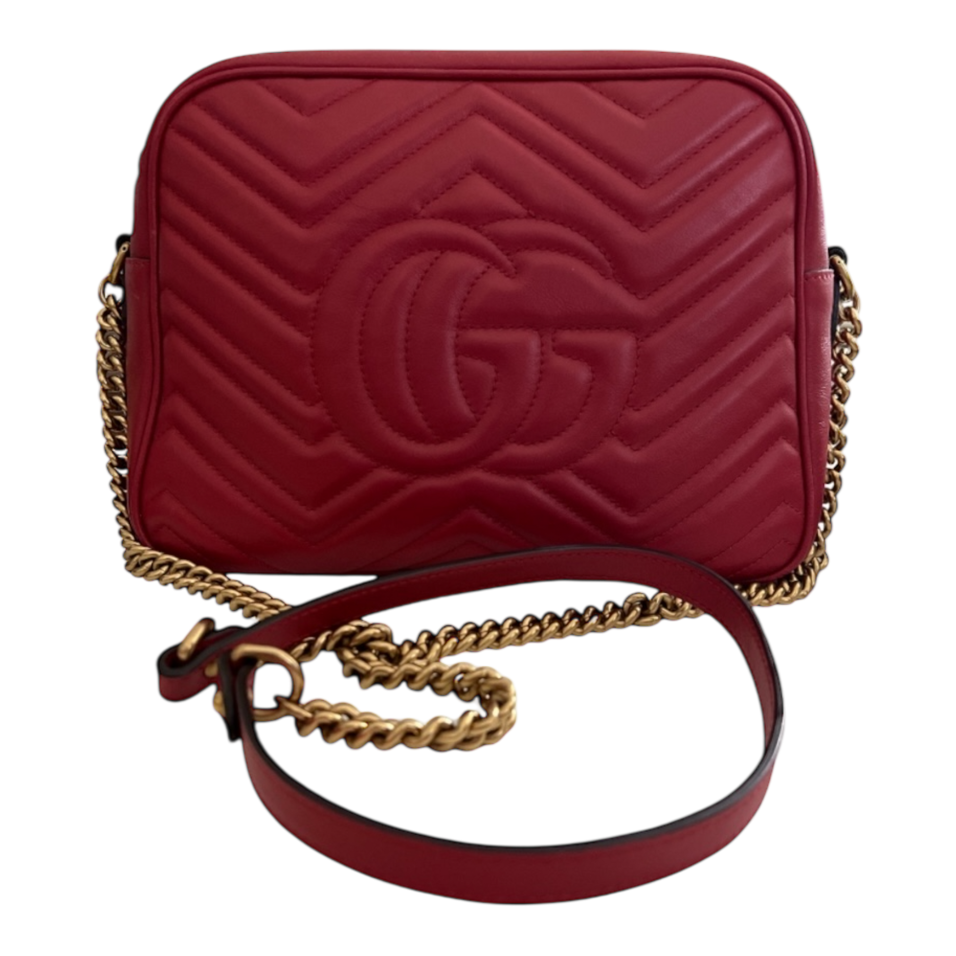 Gucci Marmont Medium Red Matelasse Red Crossbody Camera Bag Purse Chevron
