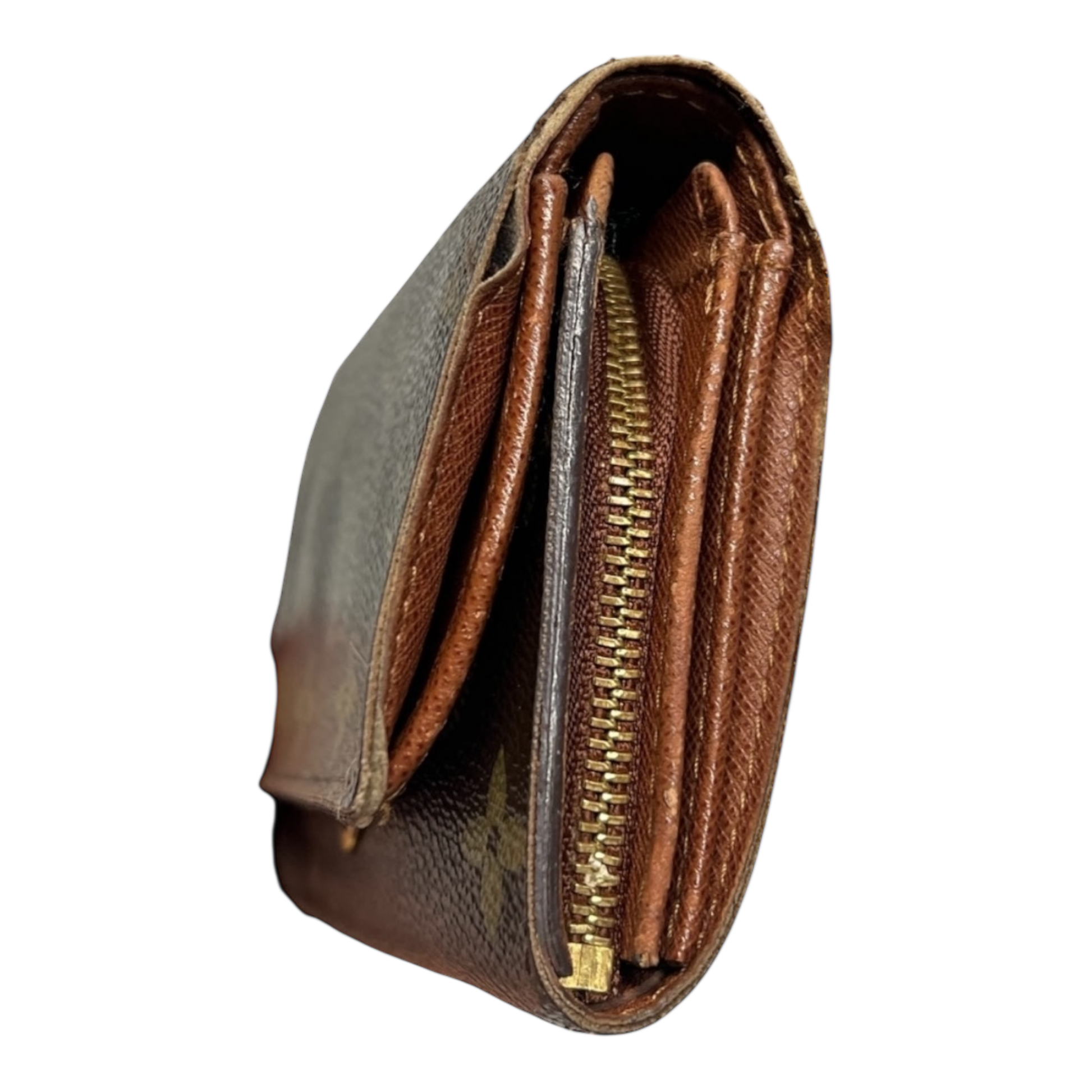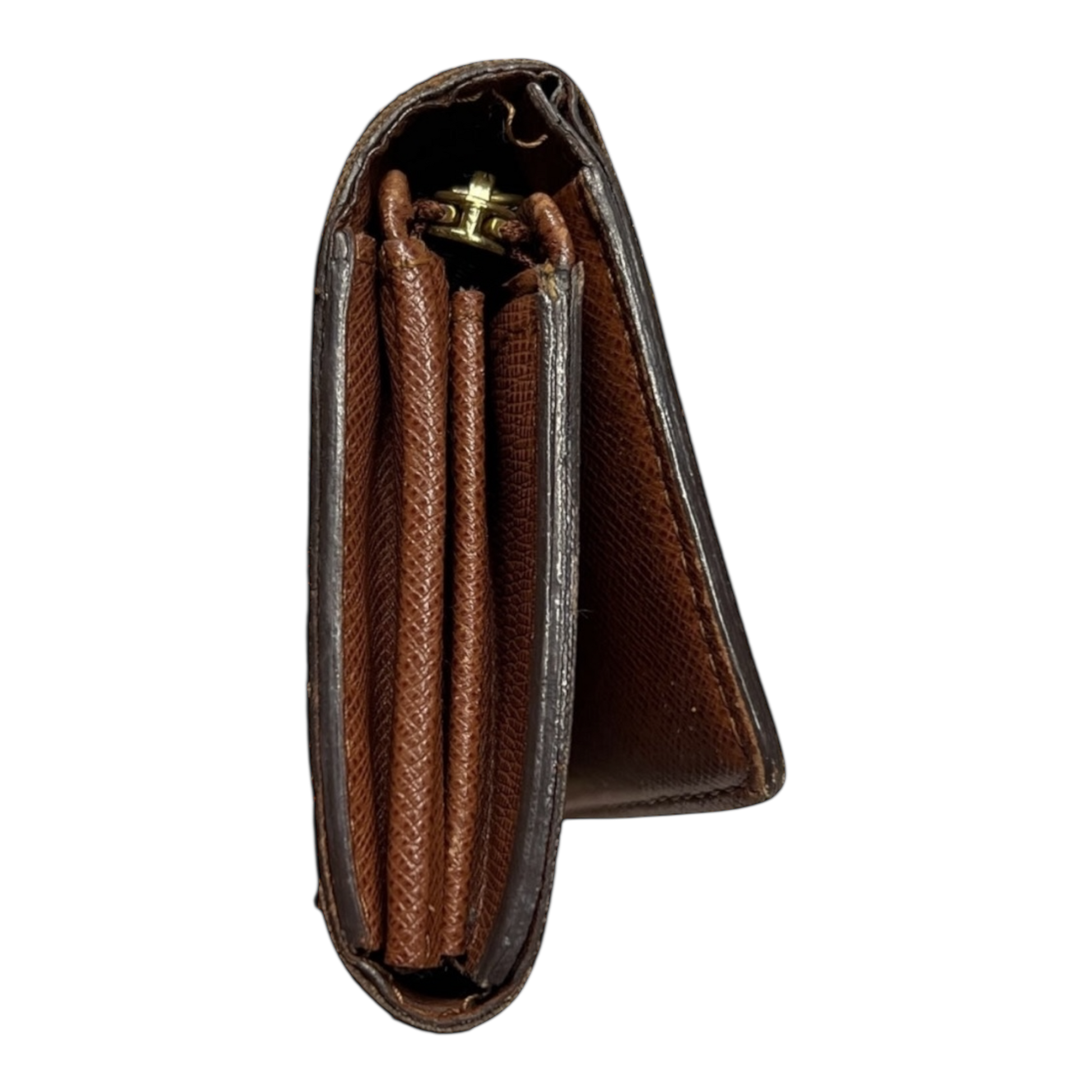 General wear: Despite the missing button and corner wear, the wallet retains its overall structure and usability.