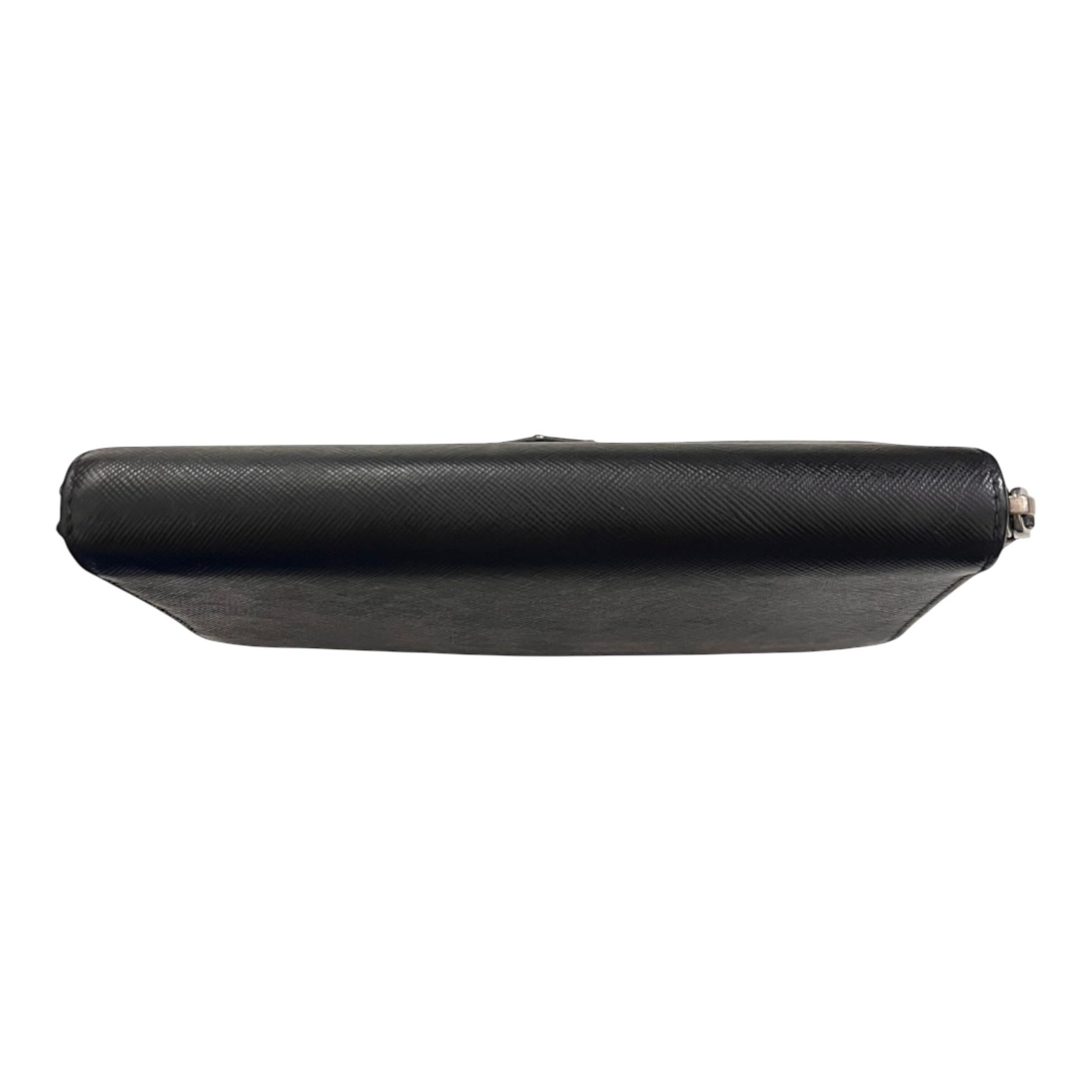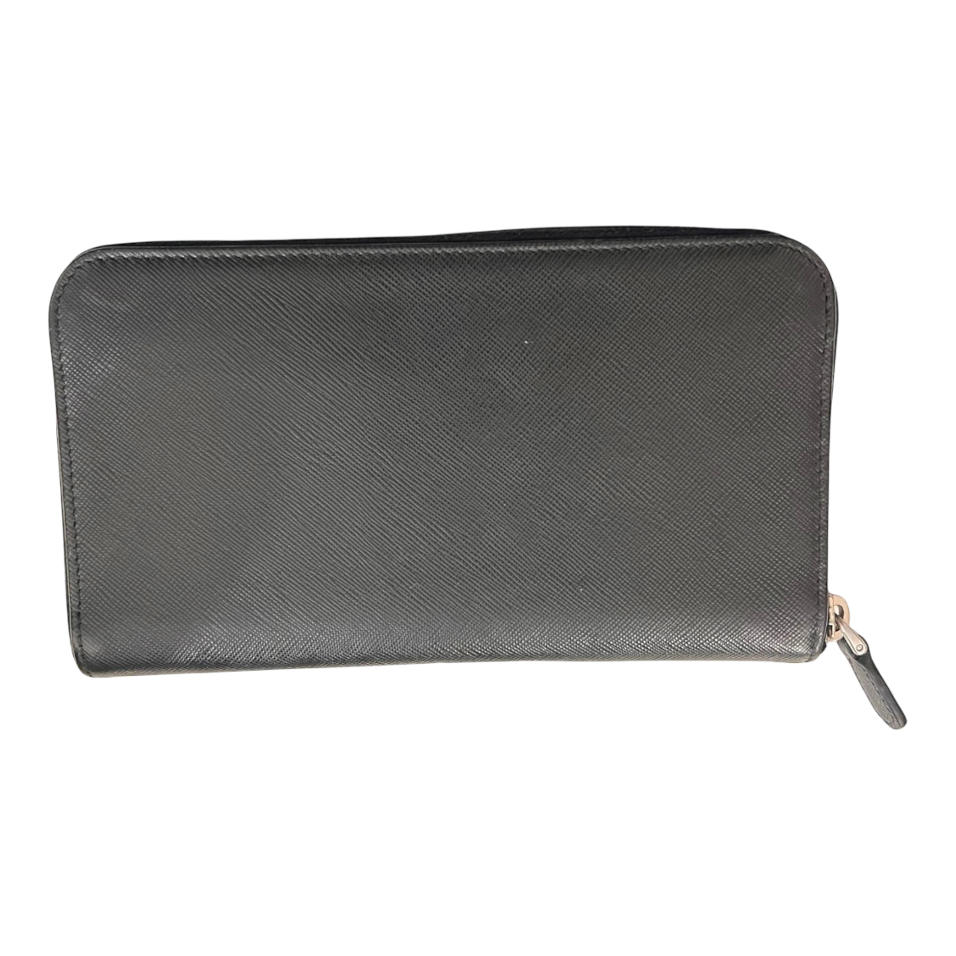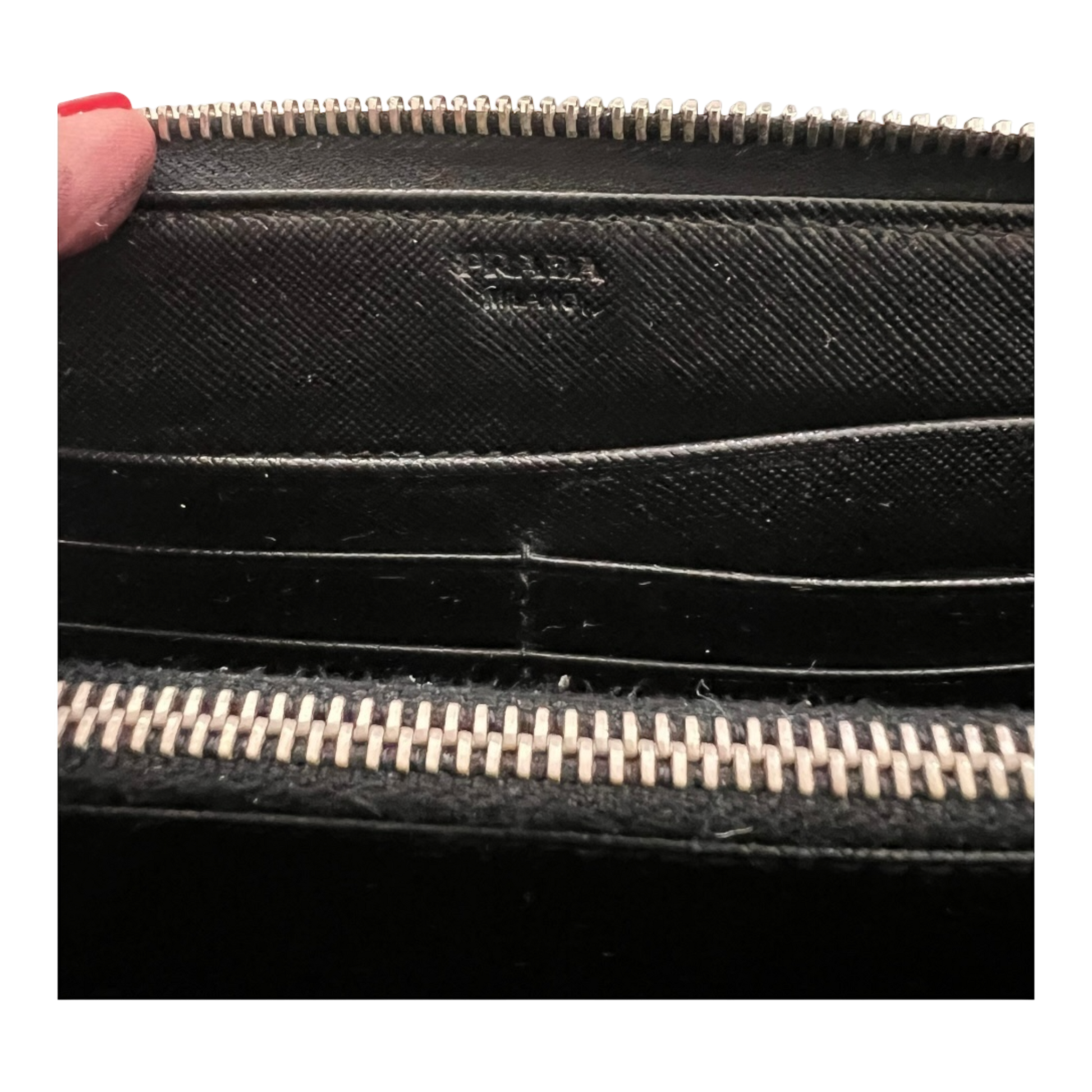 This Prada wallet is a must-have for anyone looking for a stylish and functional accessory. Made from high-quality saffiano leather, this wallet features a sleek black design with a zip-around closure. It is perfect for both men and women, with a size of 4.5 inches in width, Height of 7.5 and 1 in thickness. The wallet includes multiple credit card slots and is perfect for storing essential items. The Prada brand is known for its quality and style, and this wallet is no exception. Made in Italy, it is a great addition to any collection.
