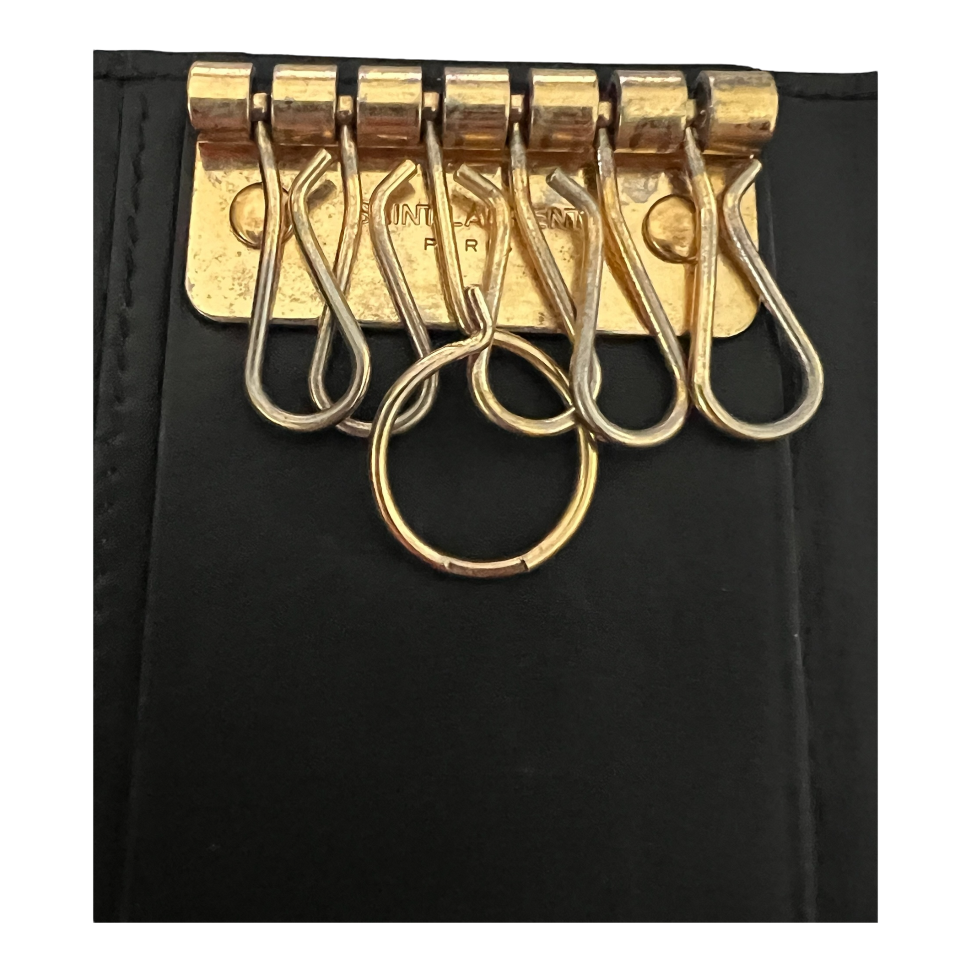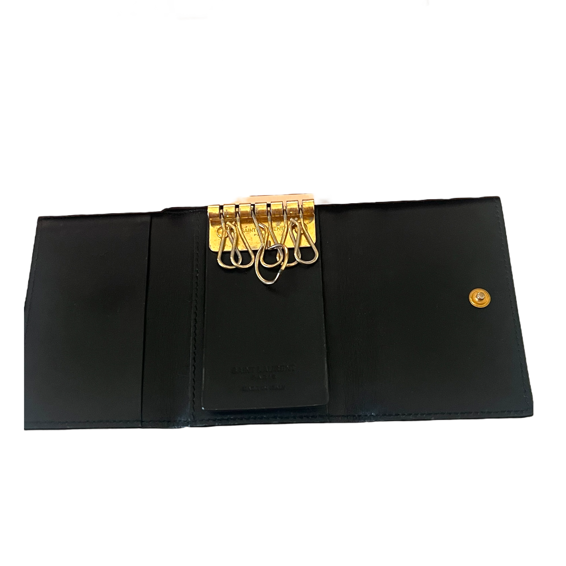 This Saint Laurent Black Key Holder combines sleek design with practical functionality. Crafted from premium black leather, it offers a refined way to organize and protect your keys. Its compact size fits easily in pockets or bags, while the durable construction ensures long-lasting use. Ideal for those who appreciate luxury accessories that enhance everyday convenience.
