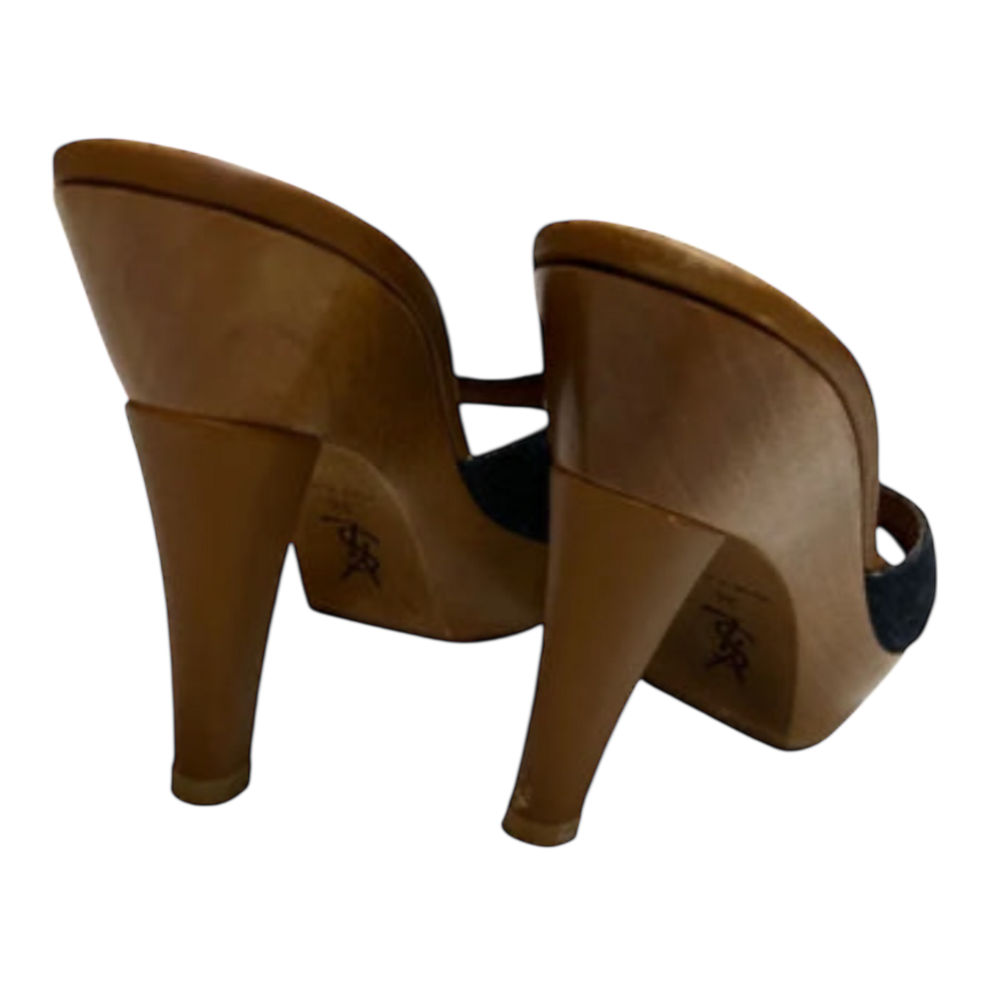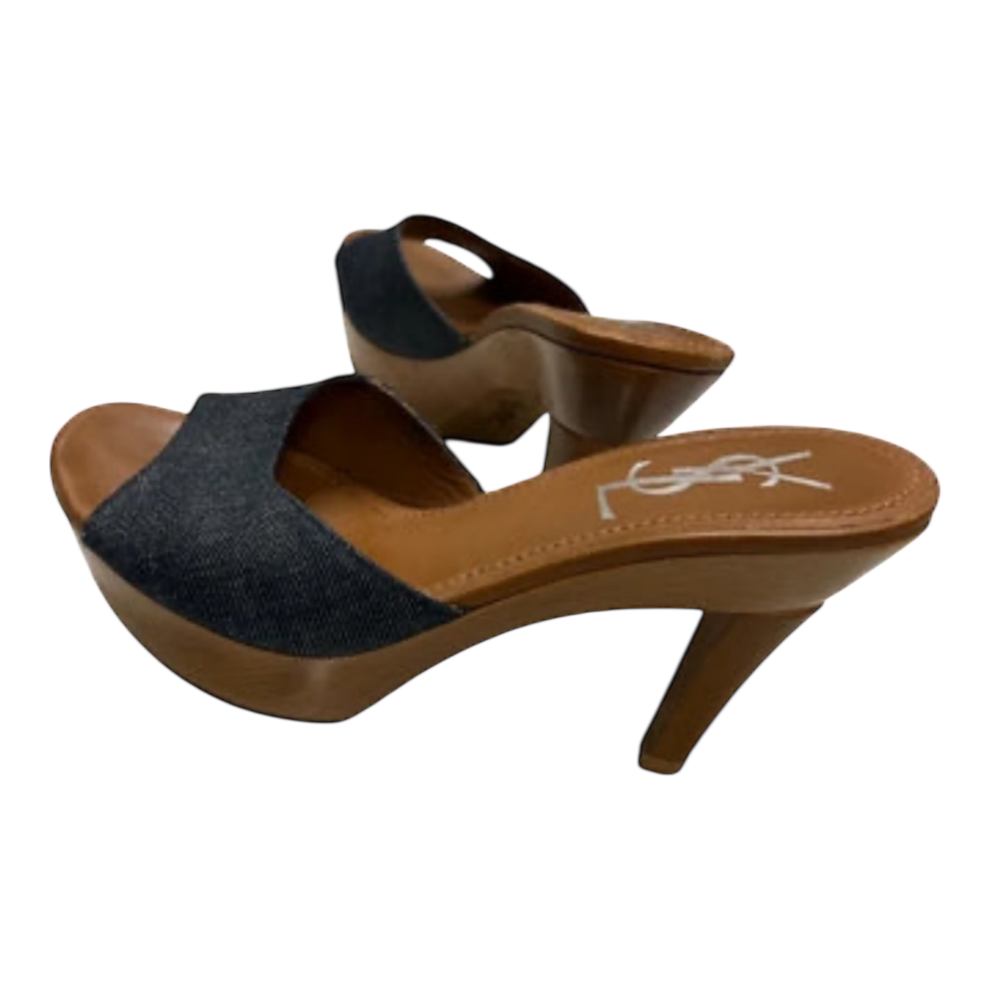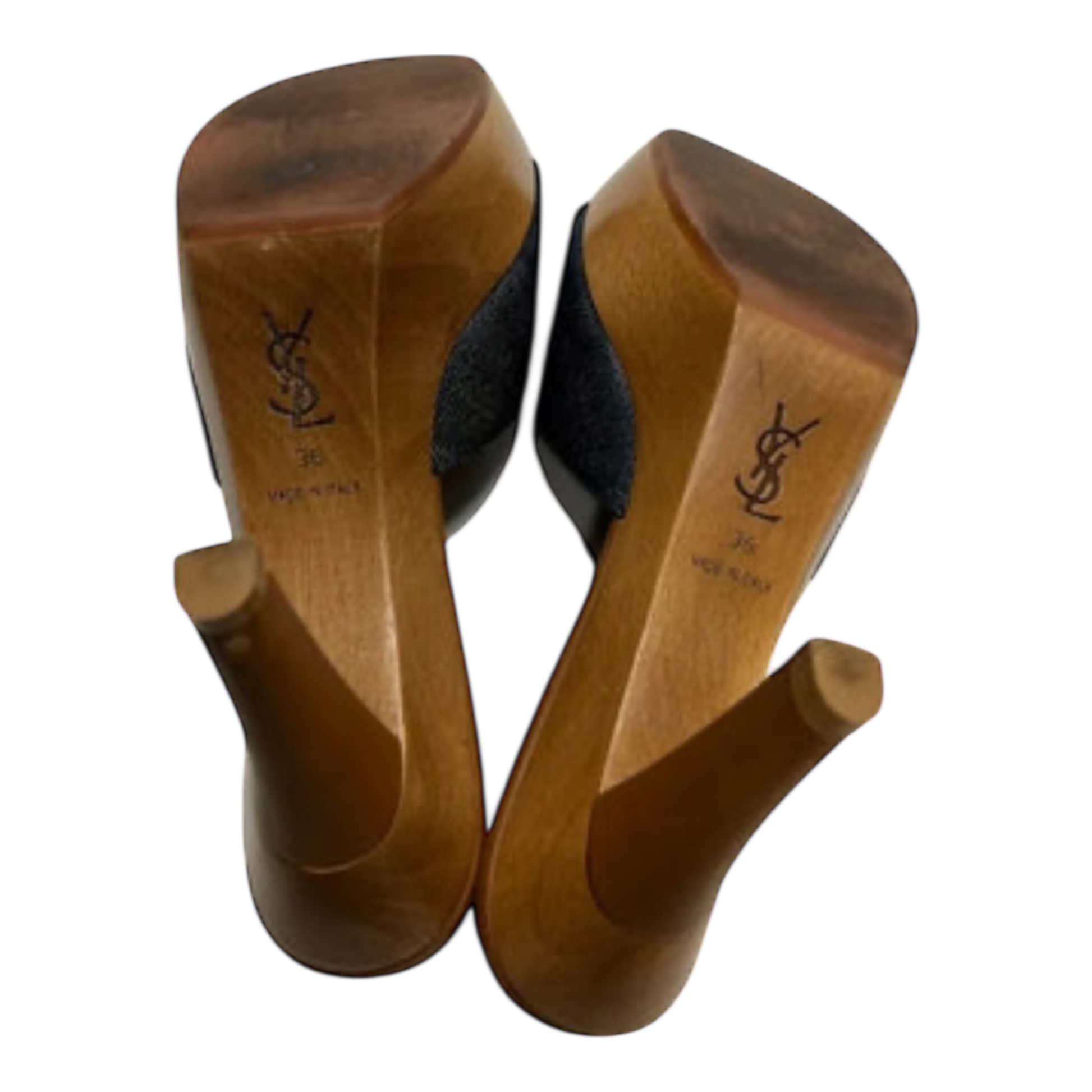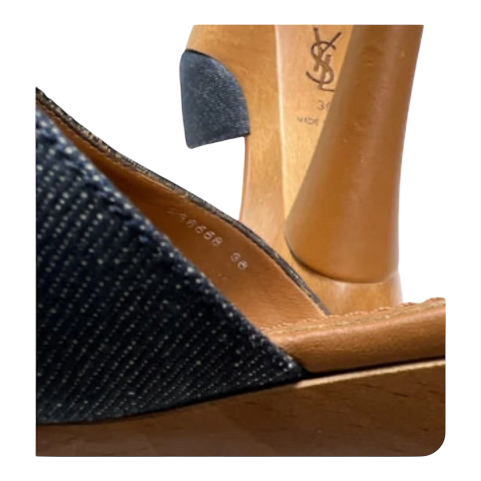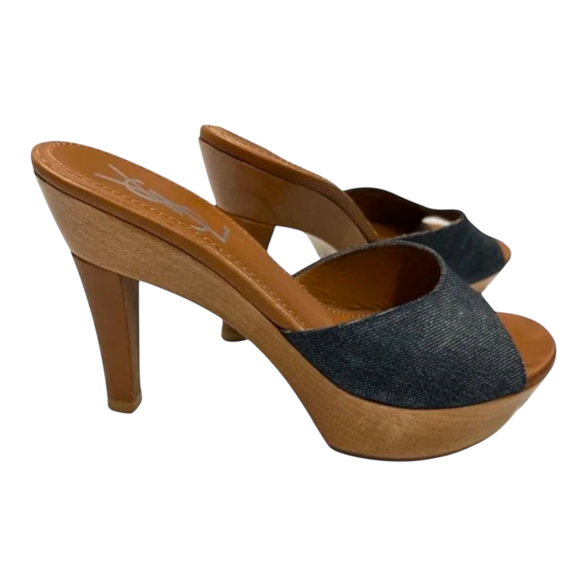 Elevate your style with these YSL Wooden Platform Heels. Crafted with premium denim, these heels offer both durability and fashion. The wooden platform adds a unique touch, while providing comfort and stability. Perfect for any occasion, these heels will have you standing out in style.
